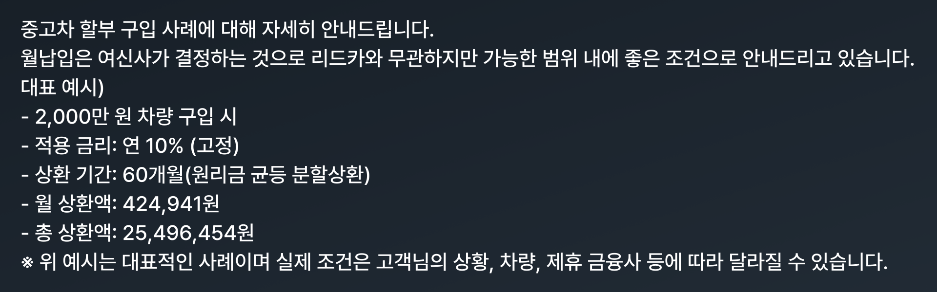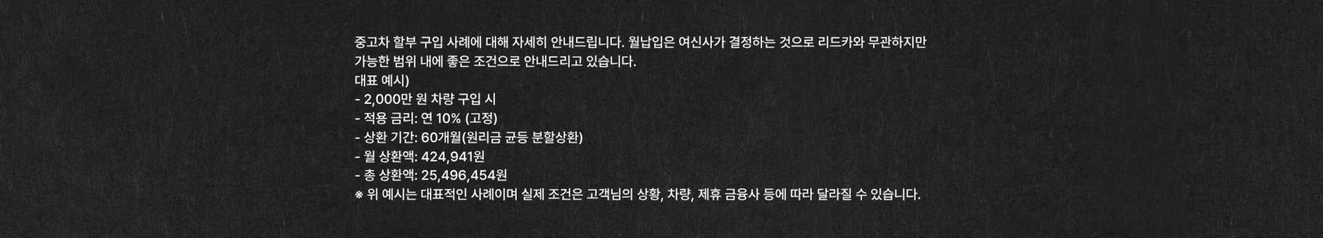 중고차 특별 할부 상품을 개발했기에 가능합니다.